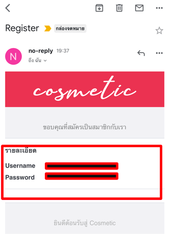 8.เช็ค EMAIL รับUSER NAME / PASSWORD ที่ใช้เข้าสู่ระบบในเว็บ