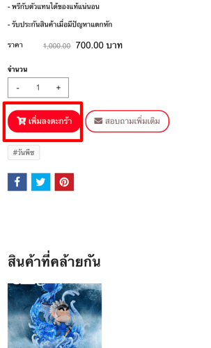 1.เจอหน้าสินค้าที่ต้องการให้เลื่อนลงด้านล่างหาปุ่ม " เพิ่มลงตระกร้า "